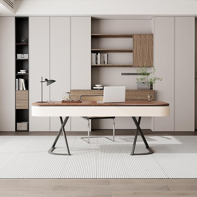 A sleek, minimalist desk designed for the modern home office, this workstation offers generous surface space and thoughtful storage solutions — perfect for work, study, or creative projects.