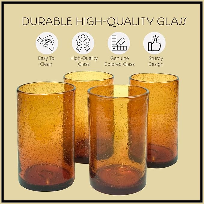 Artland 17oz Highball Tumbler, Set of 4 | Iris Seeded Design, Amber | Drinking Glass for Parties and Everyday Use - Mojito, Whiskey, Cocktail | Glassware & Kitchenware Essentials