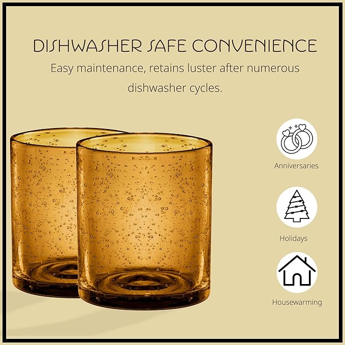 Artland 14oz Double Old Fashion Glass, Set of 4 | Iris Seeded Design, Amber | Drinking Glass for Parties and Everyday Use - Mojito, Whiskey, Cocktail | Glassware & Barware Essentials