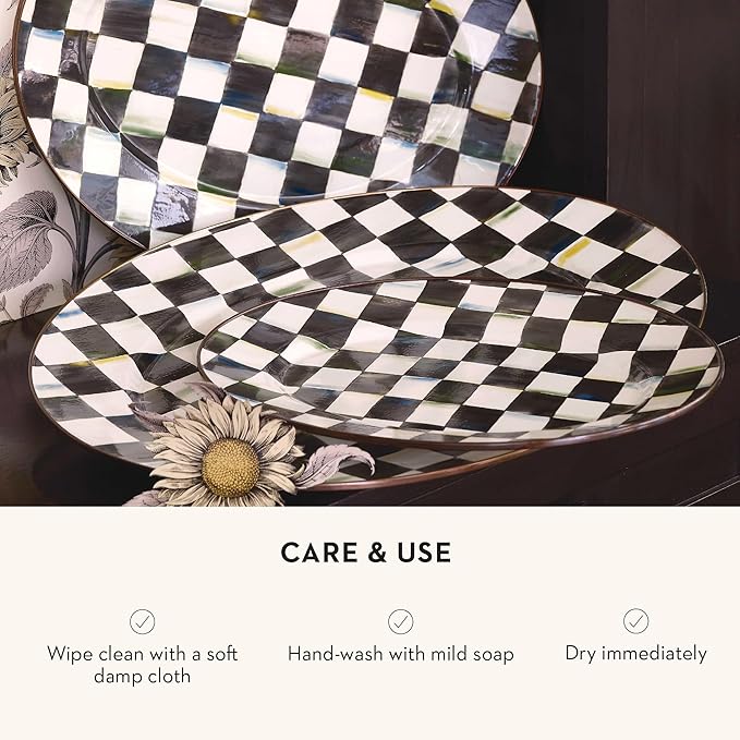 MACKENZIE-CHILDS Enamel Oval Platter, Serving Plate for Entertaining, Medium, Black-and-White Courtly Check