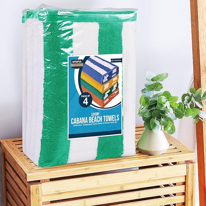 Utopia Towels 4 Pack Cabana Stripe Beach Towel Oversized 100% Ring Spun Cotton Beth Towels Highly Absorbent Quick Dry , Green