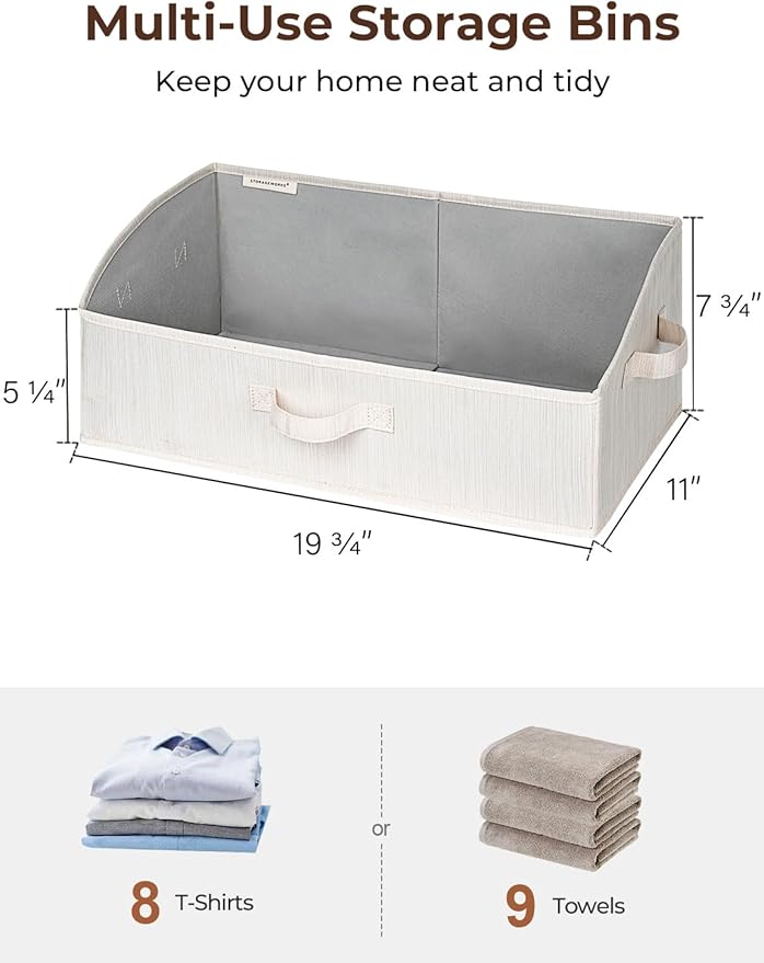 StorageWorks Closet Storage Bins, Trapezoid Organizer Box for Shelves, Fabric Clothes Bin, Foldable Organizing Baskets with Handles, Large, Mixing of Beige, White & Ivory, 3-Pack