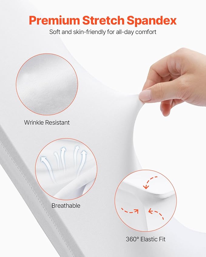 - 【ELASTIC & PREMIUM MATERIAL】- Color: White; Made of 94% Polyester & 6% Spandex, refined stitching makes it stretchable, wrinkle resistant, soft and flexible. Rest assured to use them for many times!