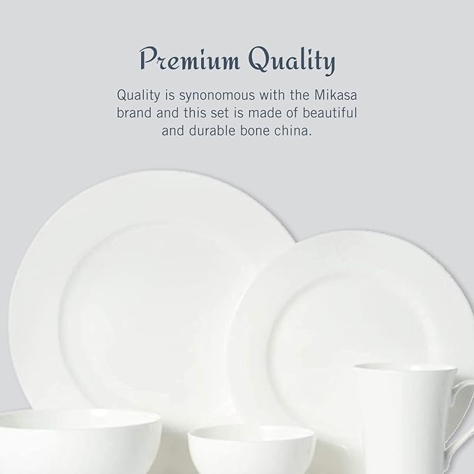 Mikasa Delray 40-Piece White Dinnerware Set, Service for 8, Durable Porcelain Plates, Bowls, and Mugs, Dishwasher and Microwave Safe