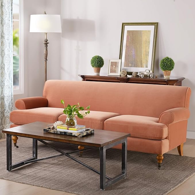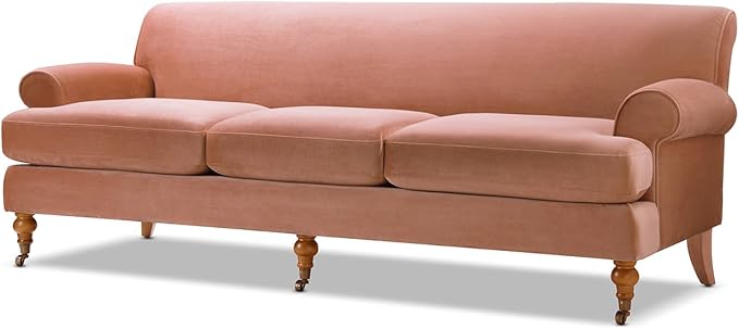 Jennifer Taylor Home Alana Lawson Three-Cushion Tightback Sofa, Peach Orange Velvet, 3-Seat