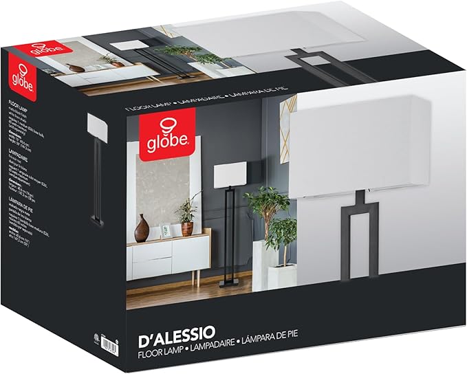 GLOBE Electric 67046 58" Floor Lamp, Matte Black Finish, White Linen Rectangular Shade, Modern Geometric Cutout Design, E26 Base