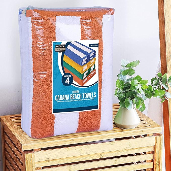 - The set includes 24 Pcs large beach towels in cabana stripe measuring 30 by 60 inches each