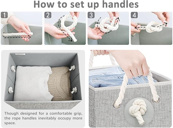 StorageWorks Storage Bins with Lids, Decorative Storage Boxes with Lid and Soft Rope Handles, Foldable Storage Baskets for Closet, Shelves, Stackable, 3-Pack, Gray, Jumbo