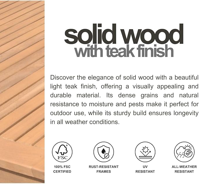 - [TEAK FINISH] Designed under a contemporary influence this set is durable, lightweight but also sturdy. Its design is timeless and elegant, an excellent product to create a cozy enviroment.