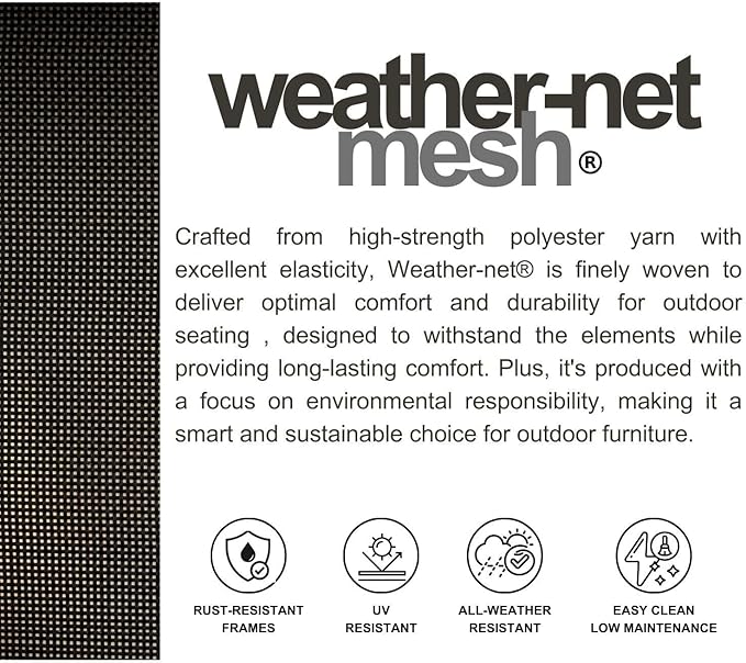 - [WEATHER-NET TECHNOLOGY] A finely woven PVC-coated yarn that is maintenance-free, and our strap material is made from high-quality polymer thread which offers both strength and elasticity.