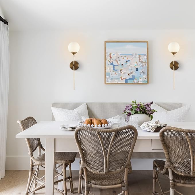 KCO Lighting Modern Milk Glass Wall Mounted Light Gold Long Sconces Wall Lighting Globe Ball Round Wall Lamp Bathroom Bar Stairway Wall Light Fixture Brushed Brass Wall Sconce