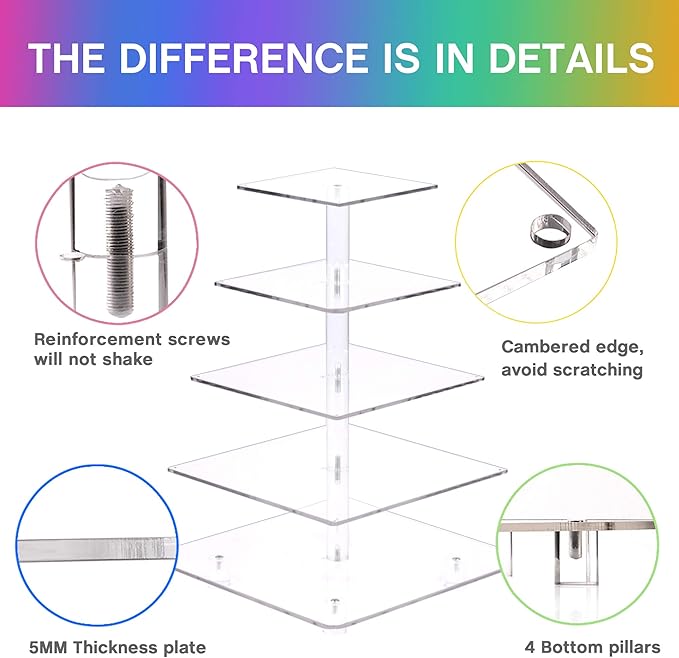 YestBuy Cupcake Stand – 5 Tier Premium Cupcake Holder – Acrylic Cupcake Tower Display – Cady Bar Party Décor – Acrylic Display for Pastry + LED Light String – Ideal for Weddings, Birthday (Colorful)
