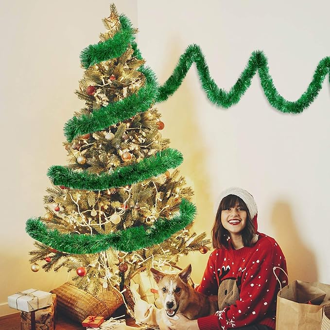 - Suit for: the green tinsel twist garland is suitable for Christmas, new year, wedding, birthday and any party or anniversary, you can put it anywhere you like, such as living room, bedroom, garden, hall, supermarket, etc.