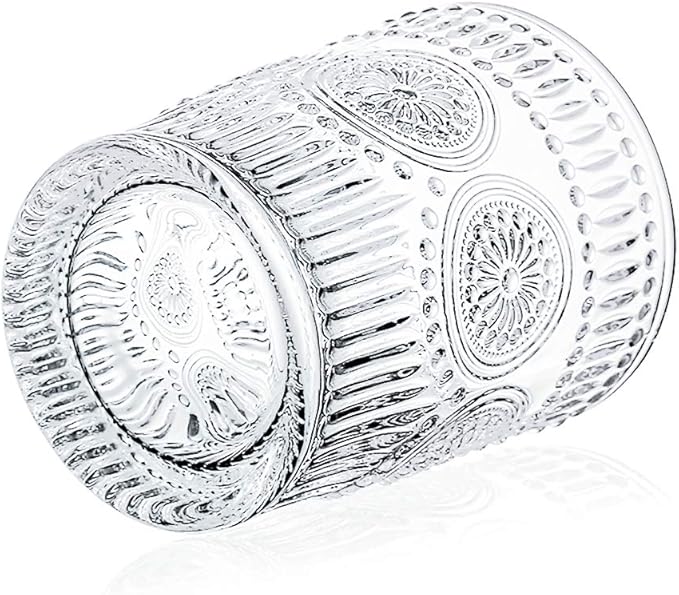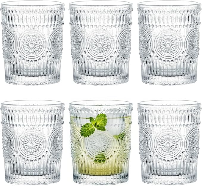 Kingrol 6 Pack 9 oz Romantic Water Glasses, Small Drinking Glasses Tumblers, Vintage Glassware Set for Juice, Beverages, Beer, Cocktail