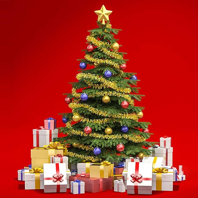 25 ft Long Roll Gold Tinsel Twist Garland, Shiny Metallic Foil Decorations for Parade Floats, Halloween, Christmas Eve, New Year Parties (4" x 25' roll, Gold)