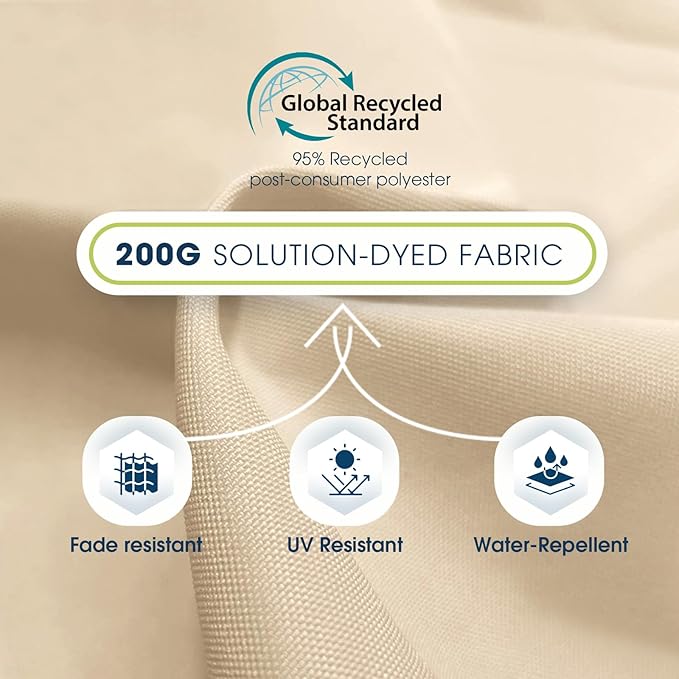 - UPGRADED ECO-FRIENDLY &RECYCLED FABRIC: This maket umbrella has a GRS certified canopy that is made of recycled Polyester Draw-Texturing-Yarn. This PU coated canopy has a US Standard AATCC 16 Grade 5 colorfastness to light, The thick high quality material provides excellent UV resistance.