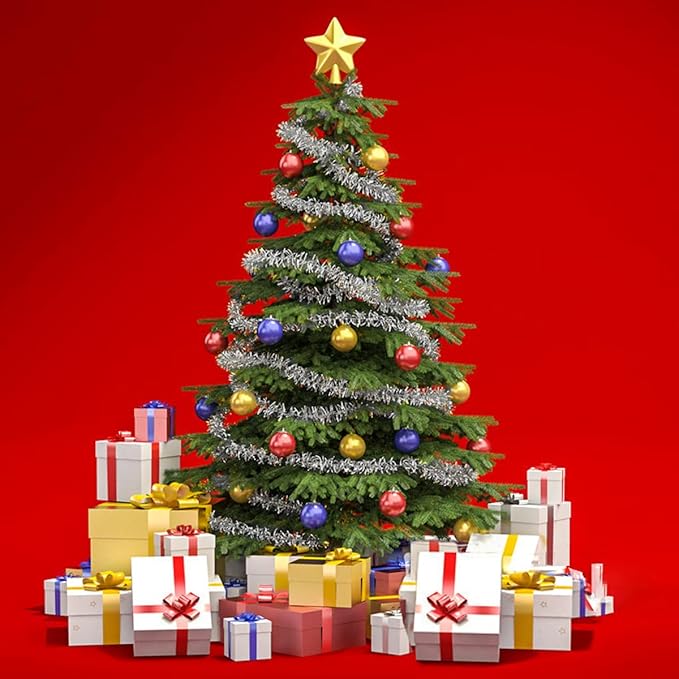 25 ft Long Roll Silver Tinsel Twist Garland, Shiny Metallic Foil Decorations for Parade Floats, Halloween, Christmas Eve, New Year Parties (4" x 25' roll, Silver)