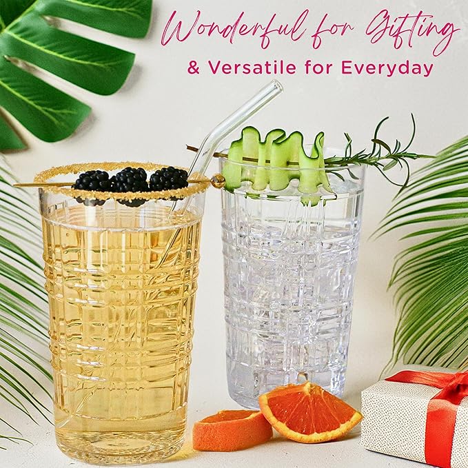 - Gift-Ready Acrylic Cups for Kitchen Decor & More – Elevate your kitchen essentials for new home with this embossed plastic glasses drinking set—perfect for gifting at weddings, housewarmings, or showers. These fancy plastic cups arrive bubble wrapped in a kraft shipping box, ready to impress. Great as glassware sets, cup sets for kitchen, or clear cups for entertaining. Hand wash only to maintain clarity and enjoy years of beautiful, reusable drinkware.