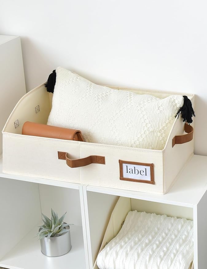 - Jumbo storage bins for organization of clothes, towels, toys, magazines, blankets, office & craft supplies, etc.; Organization bins suitable for closets, shelves, and wardrobes.