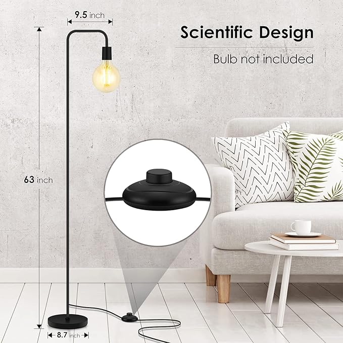 - Design, Less is More; BoostArea industrial floor lamp made with matte black metal, without complex adds, this cool minimalist floor lamp offers a comfortable and delightful ambiance to your home with the modern pole and exposed bulb (Bulb Not Included); Less is more, thanks for the simple design, this standing lamp leaves space for you to DIY, you are the designer for your unique room; Pick it as the floor lamps for bedroom or living room, enjoy with vintage, mid-century or contemporary styles