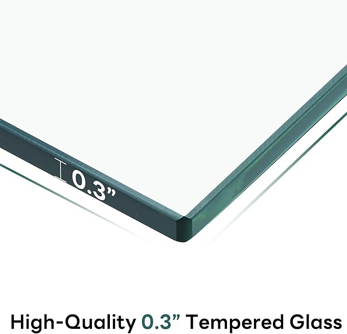 - High-Quality 8mm Tempered Glass: This 0.3" thick tempered glass offers robust support, holding up to 110 lbs with ease. Its waterproof, scratch-resistant, and easy-to-maintain surface makes it perfect for long-lasting use