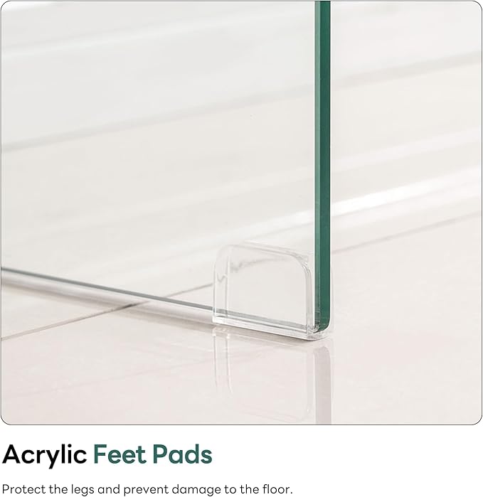 - Premium Shelf Brackets and Floor Protection Pads: Four premium brackets securely connect the glass tabletop to the base. Acrylic feet pads on the bottom protect your floors from scratches and scuffs, ensuring lasting durability