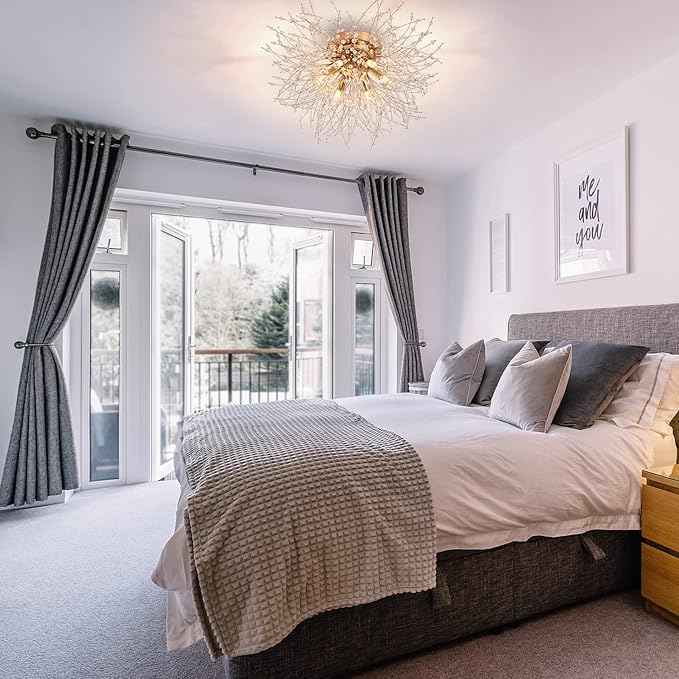 HMVPL Flush Mount Ceiling Lights, Modern Gold Crystal Sputnik Firework Close to Ceiling Lamp LED Ceiling Lighting Fixtures for Bedroom Kitchen Island Hallway Entryway Porch Gazebo