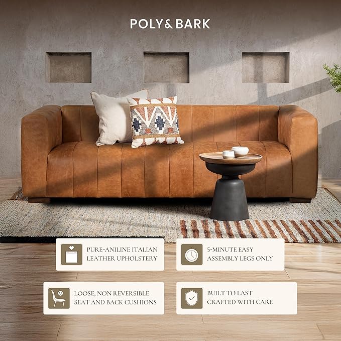 - Make Good Living Gettable: The Canale Sofa by Poly and Bark is a premium leather couch featuring full-grain pure-aniline dyed Italian leather upholstery. Our high-quality leather sofa is built to be the perfect living room centrepiece.