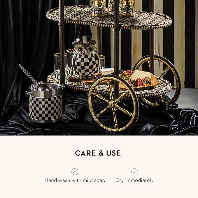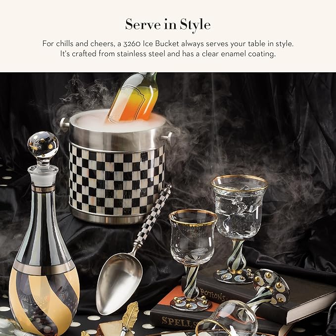 - ELEGANT SERVING ESSENTIAL: The Courtly Check bar ice bucket features a stainless-steel bucket and a clear enamel coating. It is decorated with classic black-and-white color-dragged checks and is pretty enough to display on your home bar or countertop.