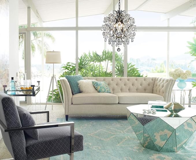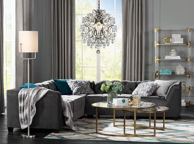 Bestier Modern Black Pendant Chandelier Crystal Raindrop Lighting Ceiling Light Fixture Lamp for Dining Room Bathroom Bedroom Livingroom entryway 3 E12 Bulbs Required D16 in x H18 in