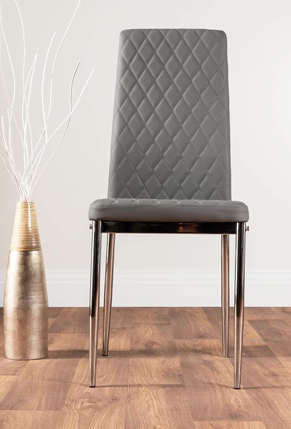- 5 STUNNING CHAIR COLORS Pick your vibe. The Milan chairs are designed with your comfort in mind and come in five eye-catching colors. With premium faux leather, diamond-stitched upholstery, and a gently curved backrest, they’re as cozy as they are chic. Choose from Elephant Gray, White, Black, Mustard, or Cappuccino Gray.