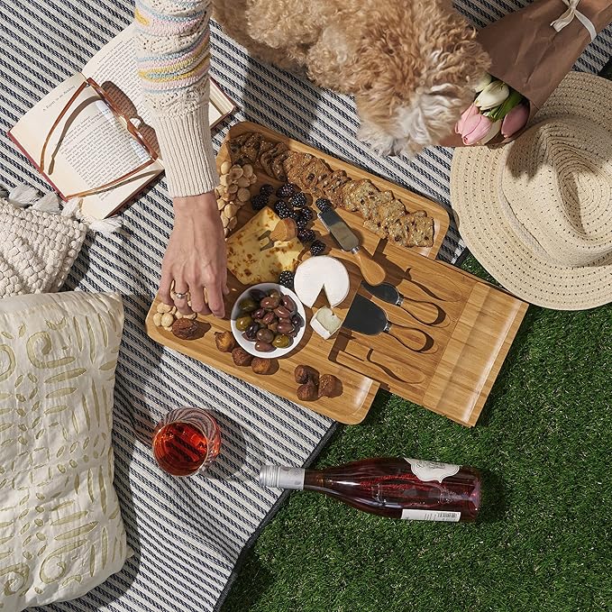 - BUILT-IN STORAGE - Don’t worry about cluttered kitchen drawers or losing tools! All of the included cheese knives and accessories fit right into the built-in storage. This not only saves space at home - it lets you easily transport to picnics and more.