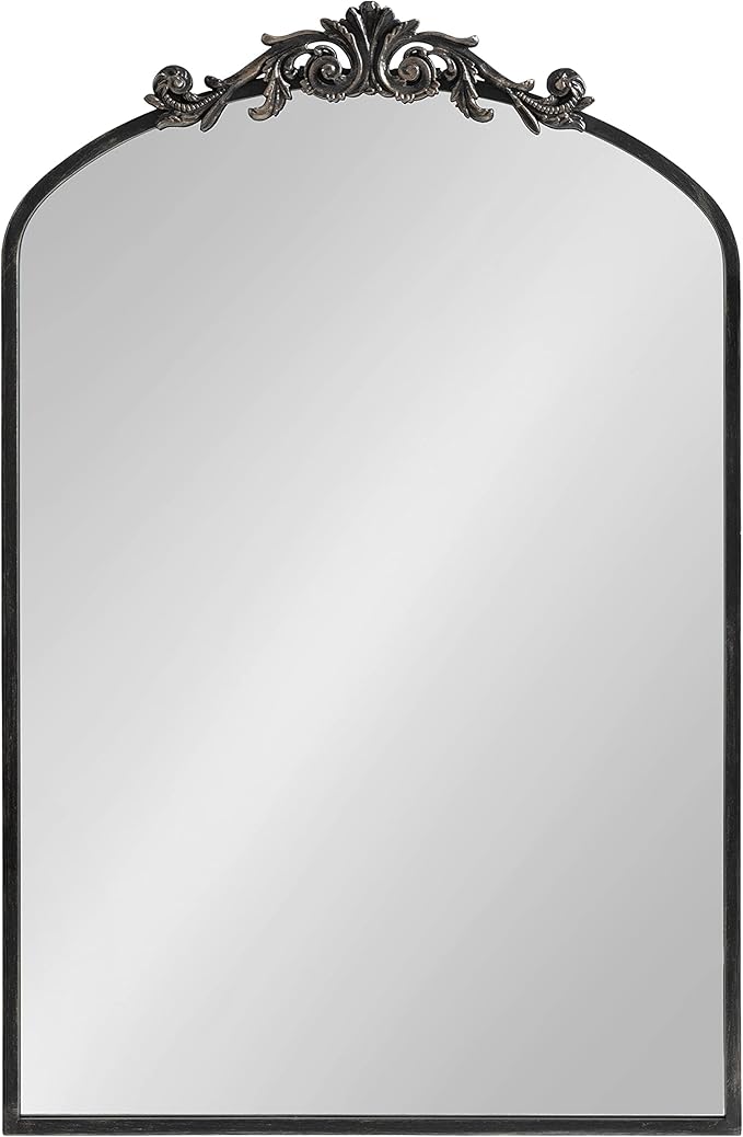 Kate and Laurel Arendahl Traditional Arch Mirror, 24 x 36, Antique Black, Baroque Inspired Wall Decor
