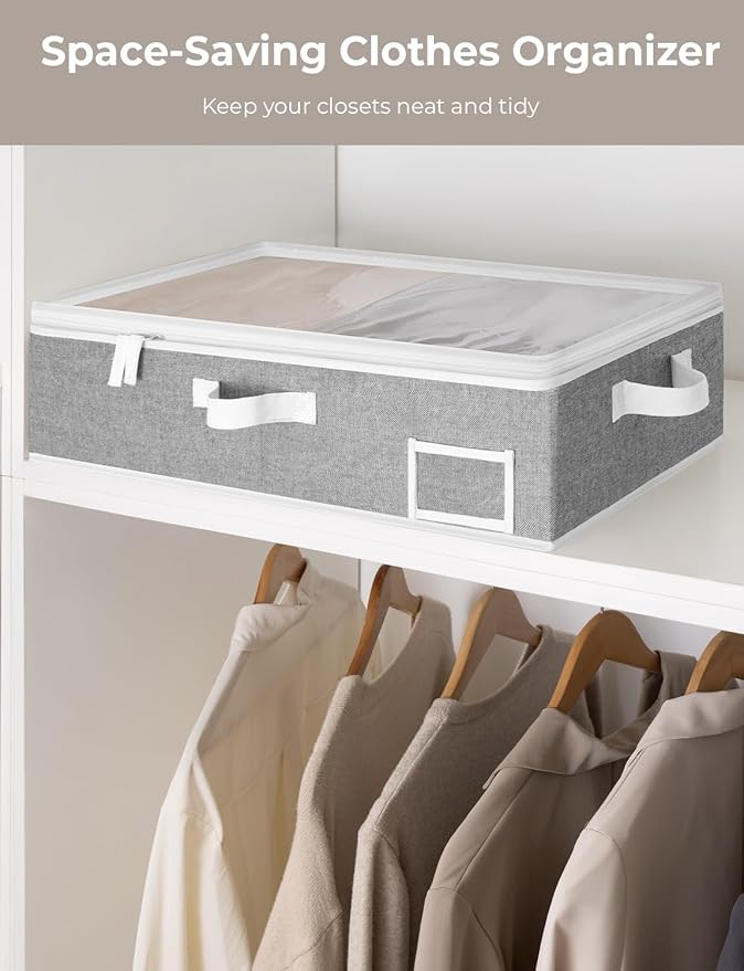 - Underbed storage containers hide away out-of-season clothes, shoes, blankets, sweaters, accessories, toys, DVDs, holiday decorations, memorabilia, etc.; Suitable to use in closets, coatrooms, bedrooms, baby nurseries, attics, basements, or under cribs at home or in a dorm.