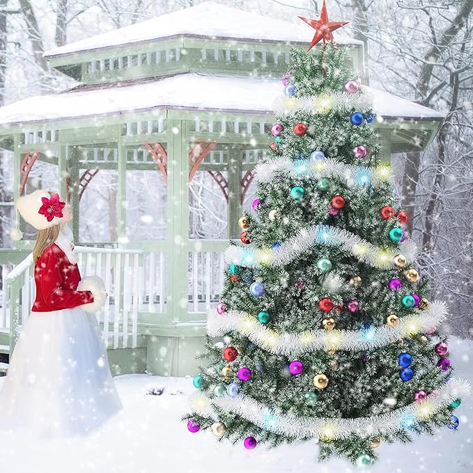 LOMIMOS 32.8 Ft Christmas Tinsel Garland with Lights, Pure White Decoration for Christmas Tree Party Wedding Supplies