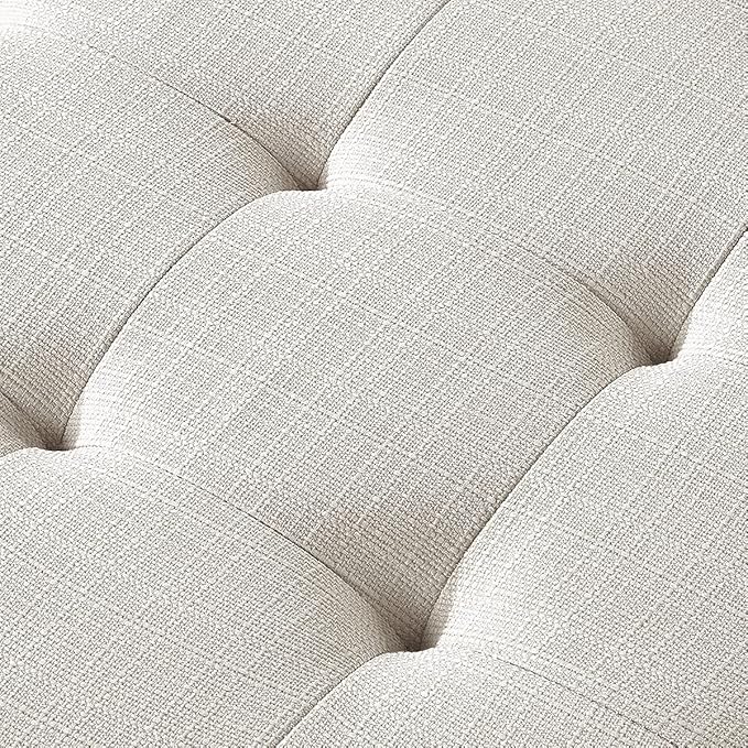 24KF Large Rectangular Upholstered Tufted Linen Ottoman Bench, Padded Bench with Solid Wood Shelf-Ivory