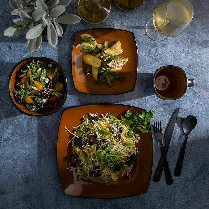 Gibson Elite Soho Lounge Square Reactive Glaze Stoneware Dinnerware Set, Service for 4 (16pc), Amber