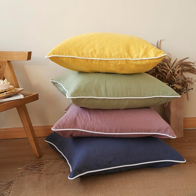 Simple&Opulence 100% Linen Euro Sham Covers with Piping Trim, 26"x26" Pillow Cover Set of 2, Breathable Pillow Shams for Bed Couch Decorative Cushions, Sage Green
