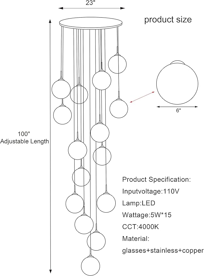 - ★ Material: Round stainless steel lampholder, polished through multiple processes, thick and durable, with antioxidant and rust resistant functions; Spherical glass lampshade, using LED copper wire light source, is very energy-saving and has soft light