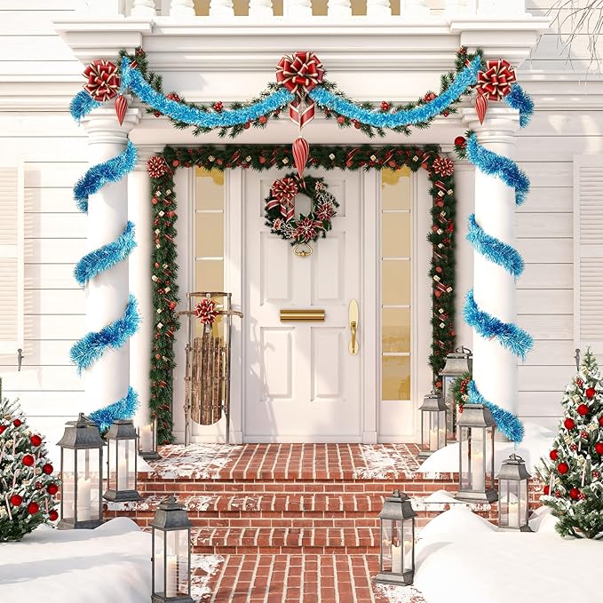- Quality: blue Christmas garland is made with quality tinsel with shine,simple and elegant, thick version for indoor and outdoor use,help add a pop of brightness in a long time