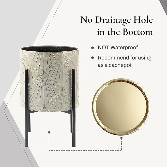 - Effortless Assembly: The 3 PCs standing plant pots comes with sturdy metal plant legs for easy setup. Simply attach the metal crossbars into the notches, insert the screws, and tighten them. Once assembled, effortlessly place the gray and gold indoor pots into the black metal stands for a stylish display.