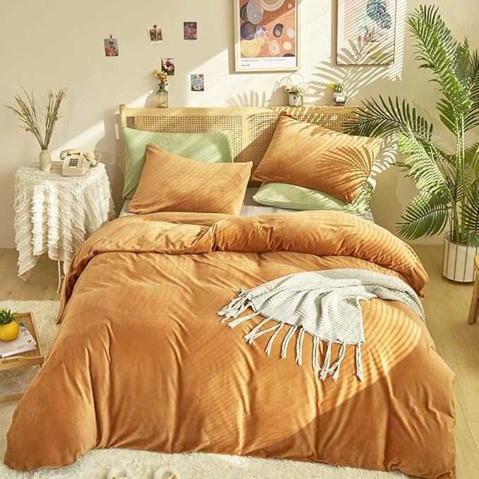 - 【Product Design】: The pumpkin velvet comforter sets fabric which feels soft and smooth to create a super warm, comfortable comforter set.