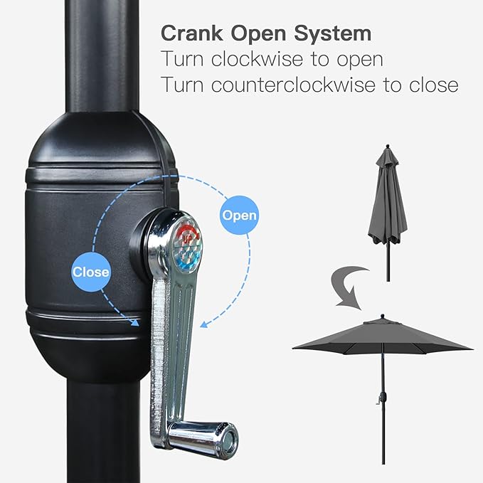 - PUSH BUTTON TILT FOR MORE ANGLES- Tilt with push button for more angles of shading, crank handle for easy opening and closing, air vented at the top, cool and can withstand sudden gust.