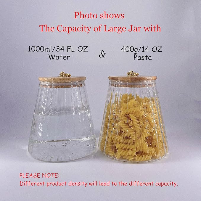 - The Large Glass Jar holds 1600ML (54 FL OZ) or 1.1 lbs (500g) Coffee Beans. It is perfect to store and display all manner of dry foods such as coffee beans, tea, homemade chocolate, candy etc. The sealed design can prevent moisture in air, keeps foods fresh longer.