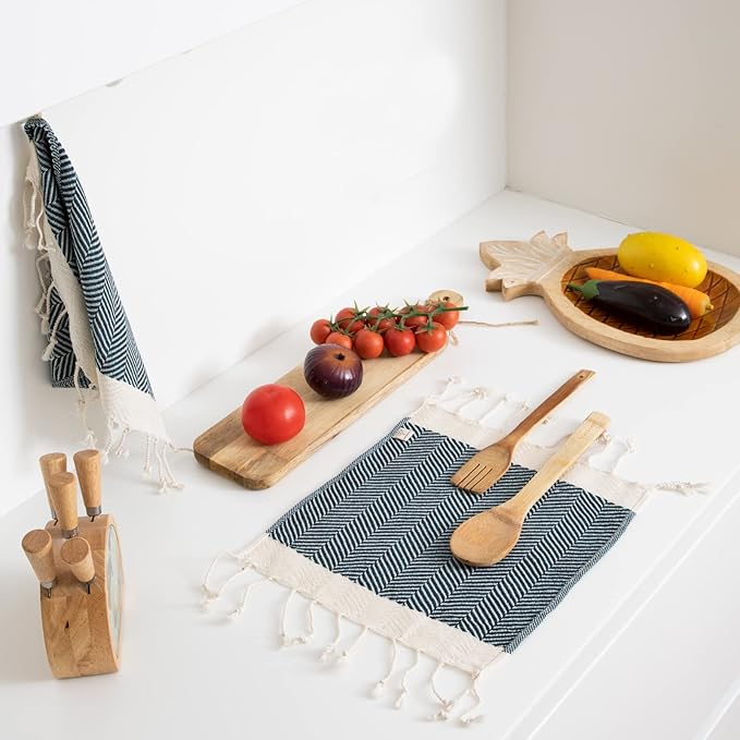 SMYRNA TURKISH COTTON Herringbone Series Kitchen Dish Towels Pack of 6, Machine Washable Wash Cloths, Ultra Soft, Absorbent, Prewashed and Quick Dry Turkish Dish Towels, 12x12 Inch (Navy)