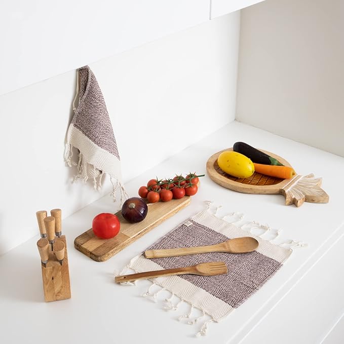 - UNIQUE DESIGN KITCHEN TOWELS: Traditional Turkish weaving design represents Tree of Life and immortality. Elegant handmade fringe tassle detail. Multi-purpose, use to revamp your bathroom or kitchen