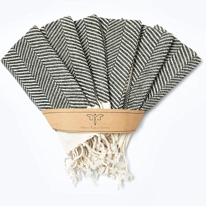 - SMYRNA TURKISH COTTON HAND TOWEL PACK OF 6: Kitchen towels made primarily from cotton. Prewashed to ensure no shrink. With loop for easy hanging. Machine washable. Imported from Turkey