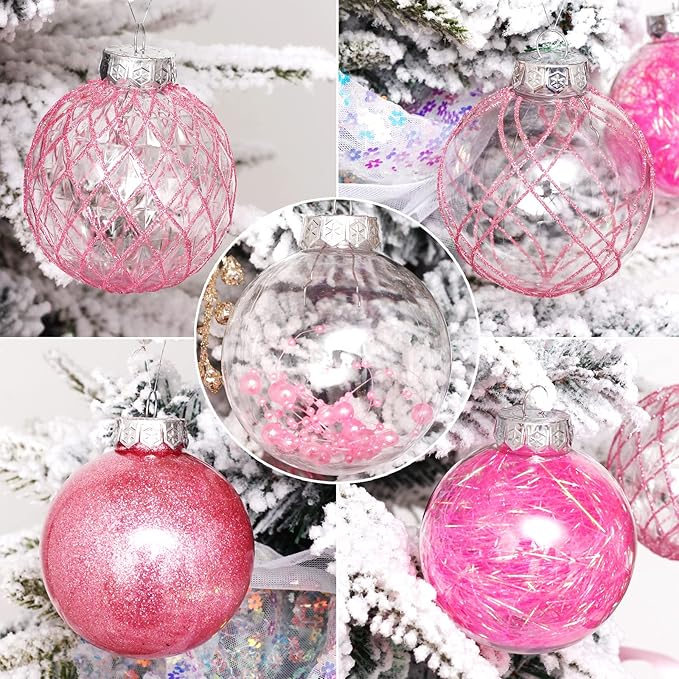 - Unique design Christmas Ornaments-these pink Christmas ball ornaments are made of durable and environmentally friendly plastic. These clear plastic decorative balls make your Christmas tree decoration more attractive. A set of 20 large Christmas tree ornaments are 80mm/3.15” diameter in size, with 5 special designs, Suitable Decorations for most Christmas trees.