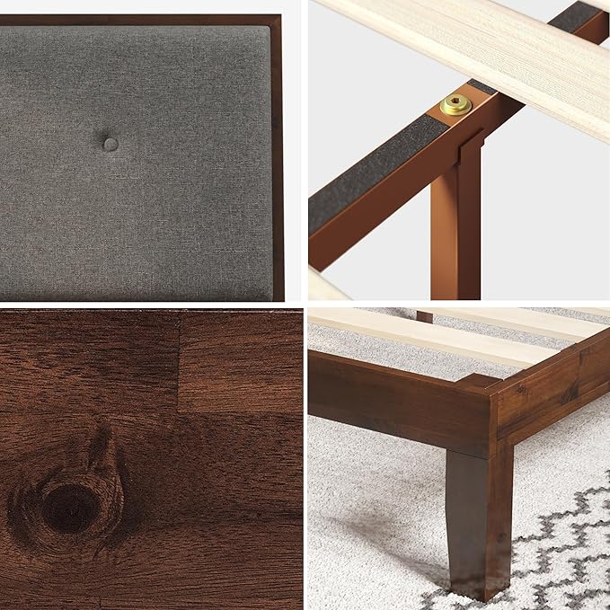ZINUS Moiz Wood Platform Bed Frame with Adjustable Upholstered Headboard, Solid Wood Bed, Wood Slat Support, No Box Spring Needed, Easy Assembly, Queen