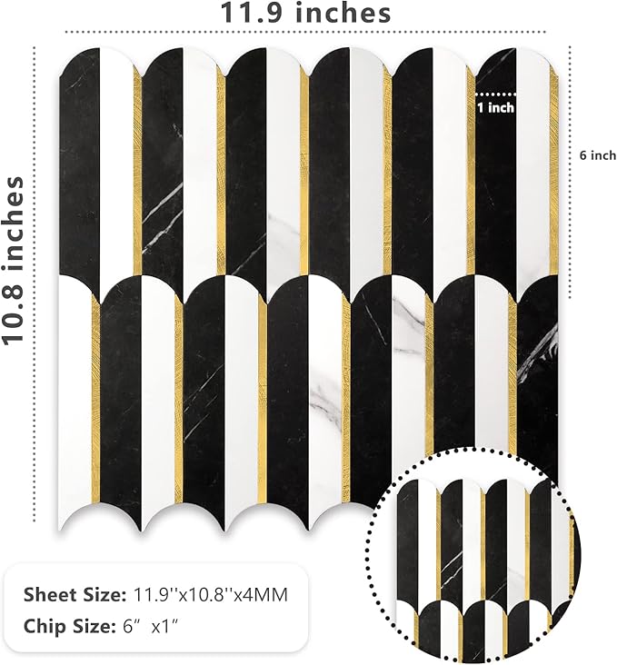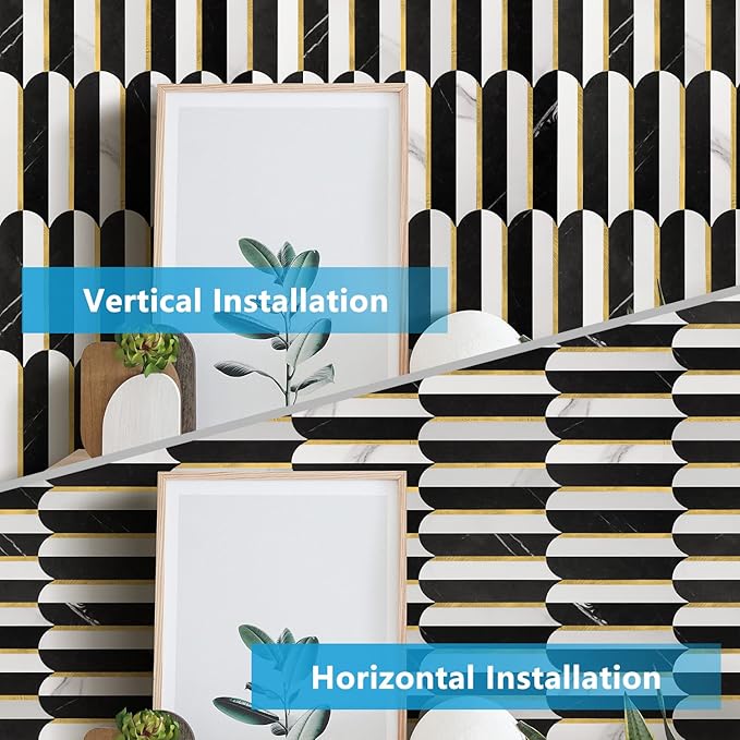 - Premium Materials:Made of PVC composite laminate mix metal, anti-scratch, high impact, color fadeless, more durable and stronger than other plastic self-adhesive tiles. Realistic marble texture of traditional Italian Carrara and Black Marquina. Unique Piano design, which is classical and match with most of the countertop.